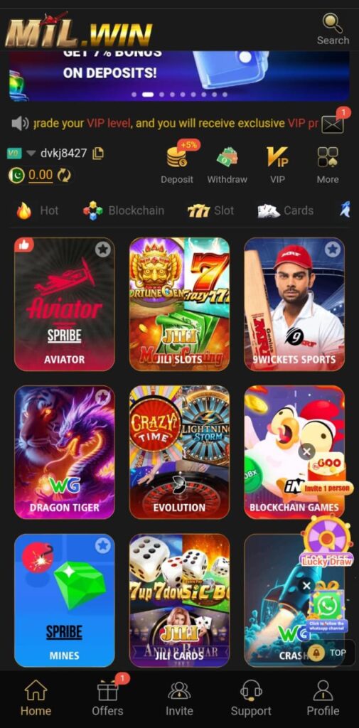 MIL WIN Game is a simple, fast, and entertaining platform for users who want to enjoy online gaming with real earning opportunities. With easy deposits, instant withdrawals, and multiple game modes, it is a good option for beginners and casual players